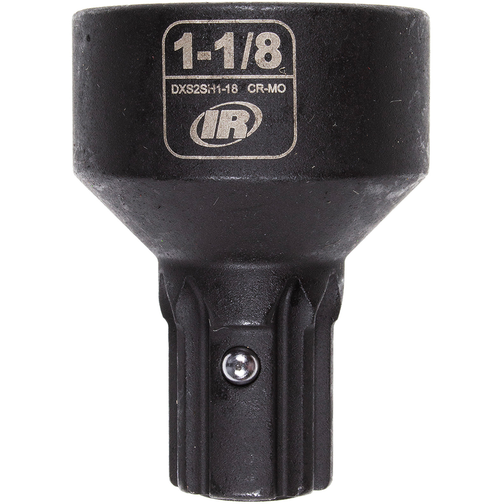 Manufactured from impact-grade CR-MO (chrome-molybdenum) alloy steel and coated with a manganese phosphate finish, these sockets offer exceptional toughness and corrosion resistance. Each socket features relieved 6-point hex corners to reduce fastener rounding, along with laser-etched size markings for high visibility. The ball nose retention pin enables quick, tool-free installation, and a square retention pin conversion kit is available for added compatibility. Backed by a limited lifetime warranty and built to ASME B107.110 standards, the DXS2SH1116L 11/16” Ingersoll Rand Deep 6-Point DXS2 Socket offers proven reliability.