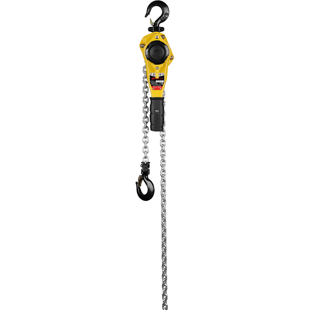 KL100-5 1 Ton Capacity Ingersoll Rand Manual Lever Hoist With 5ft Lift. Brake Type: Fused Brake Disc Capacity: 2200lbs / 1mt Chain Fall: 1 Chain Size: 5.6mm x 15.8mm Chain Weight of lift: 0.47 lbs/ft Clutch Type: None Color: Yellow